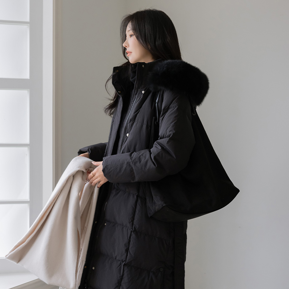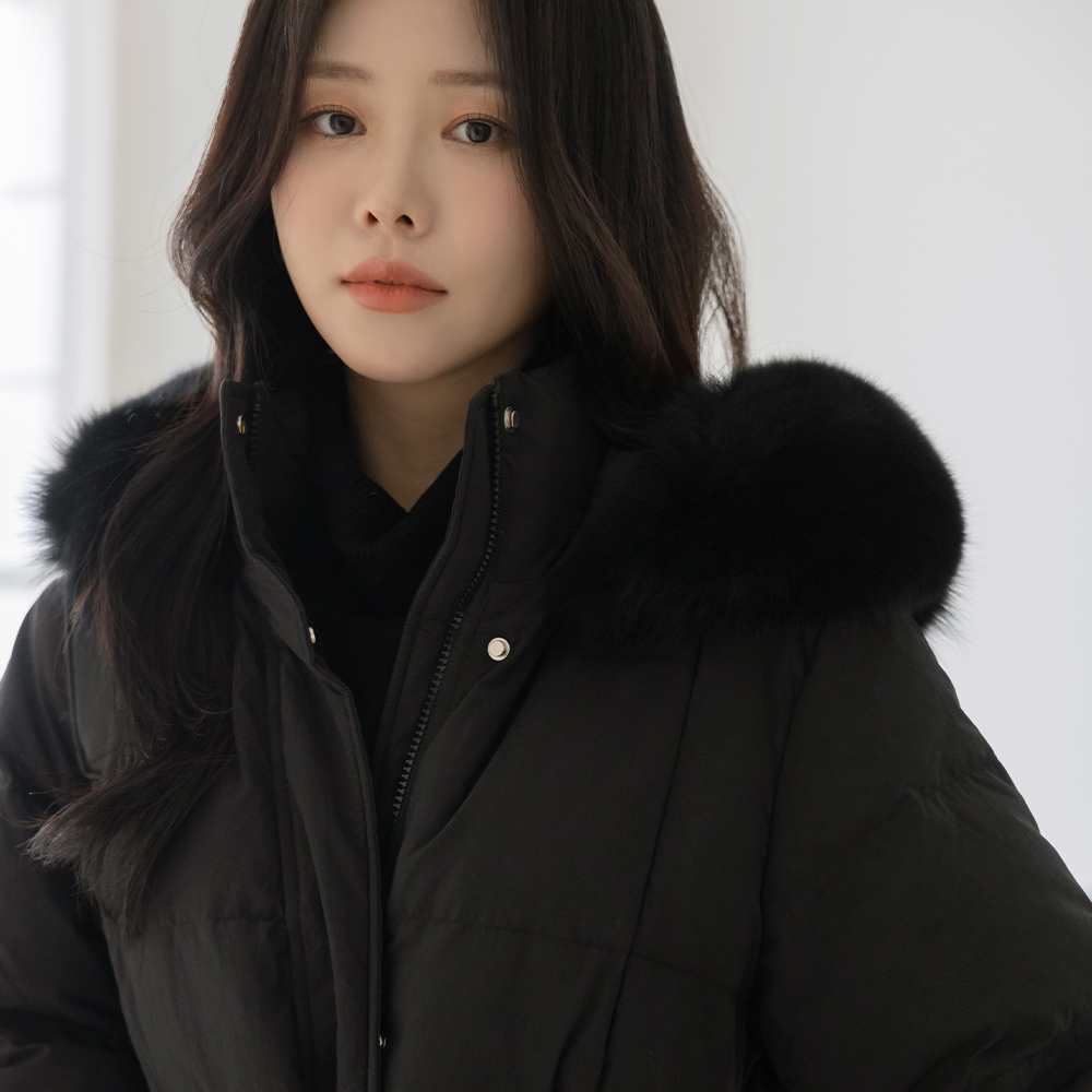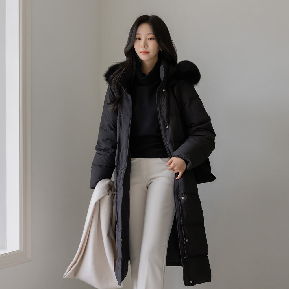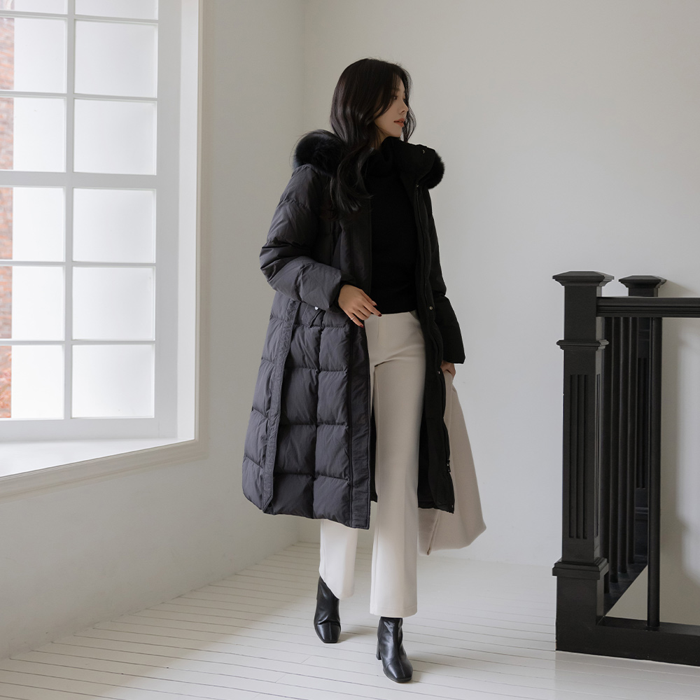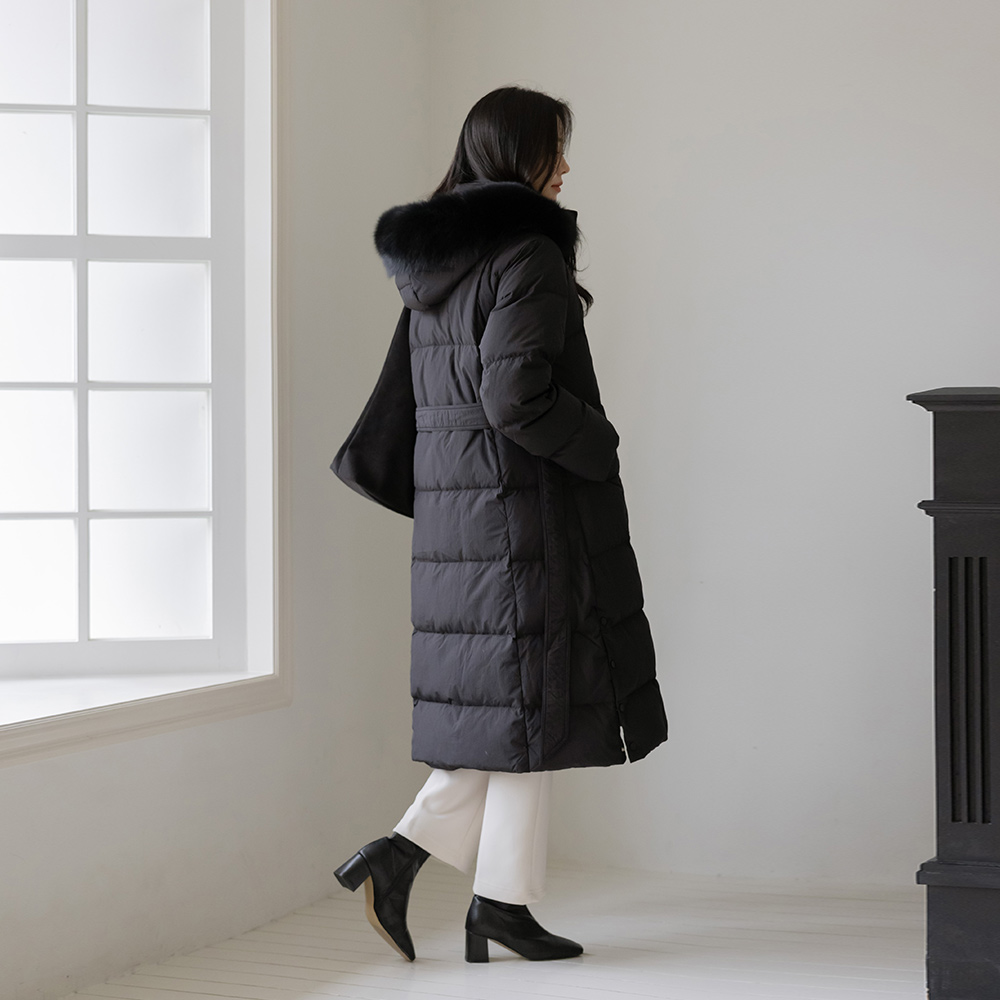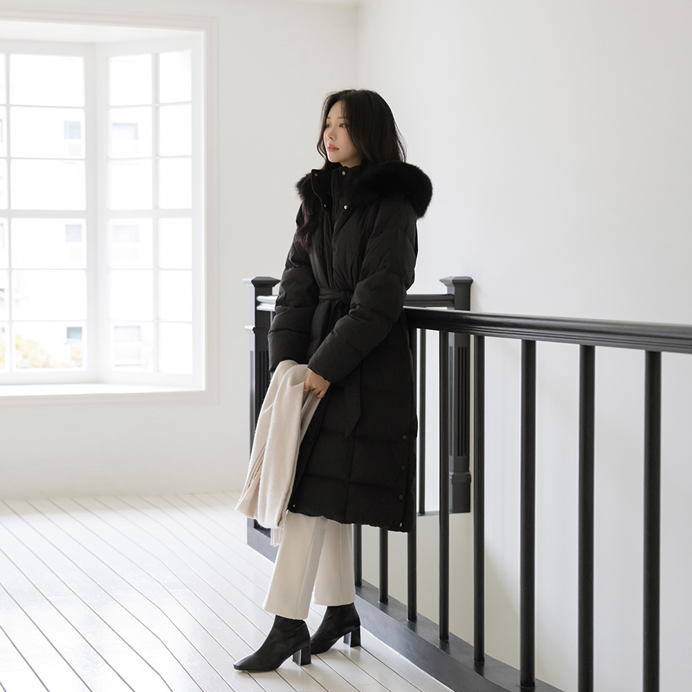 Duck Down 100% Real Fox fur Long-Padded Jumper(+Belt)