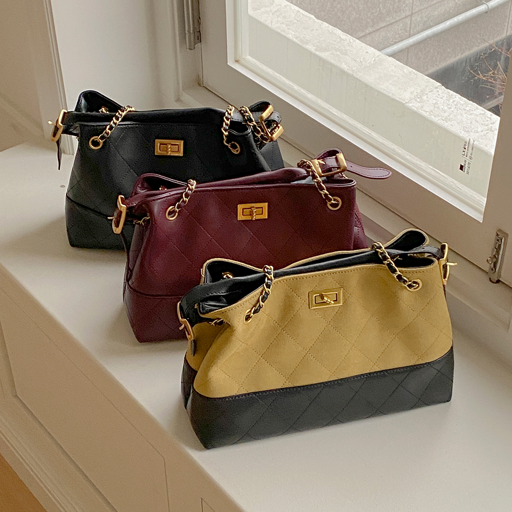 Suede&Leather quilting Chain Shoulder Bag