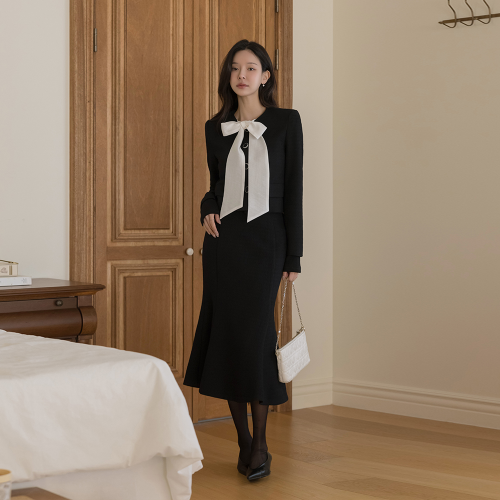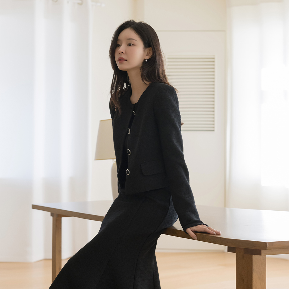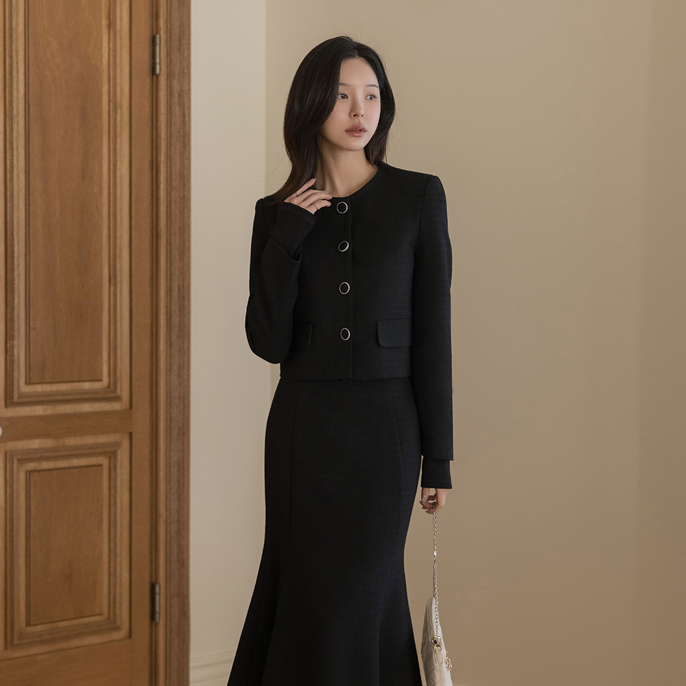 Ivy pearl Tweed Set-up Jacket(+Tie)