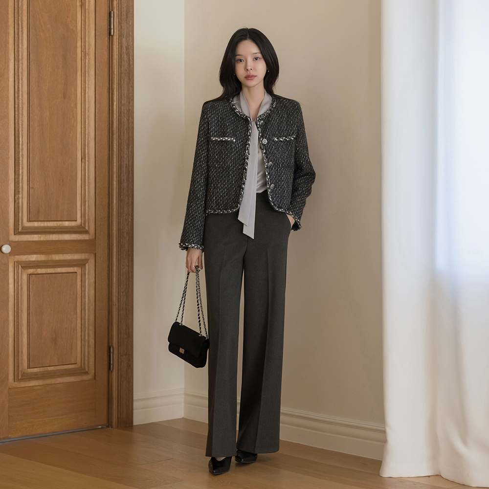 Herringbone wide fit Wool Slacks