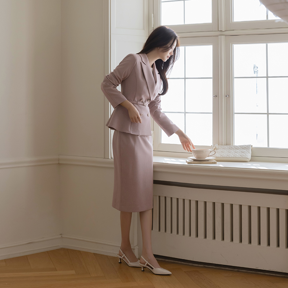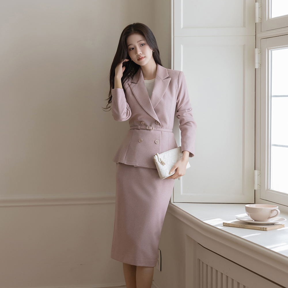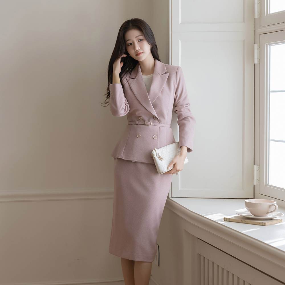 Tailored collar Peplum Set-up Jacket_Belt