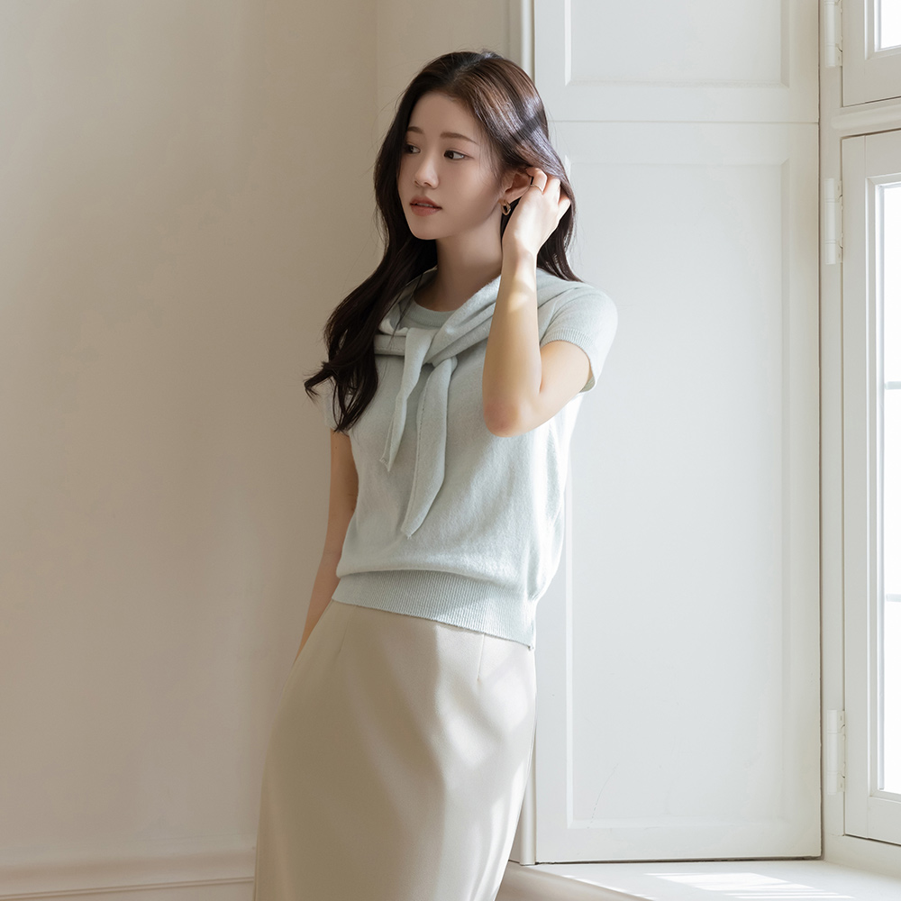 Raund neck Cashmere&Fine Wool Short-sleeve Knit