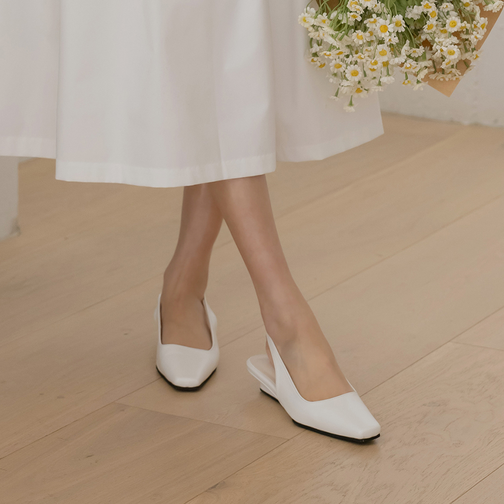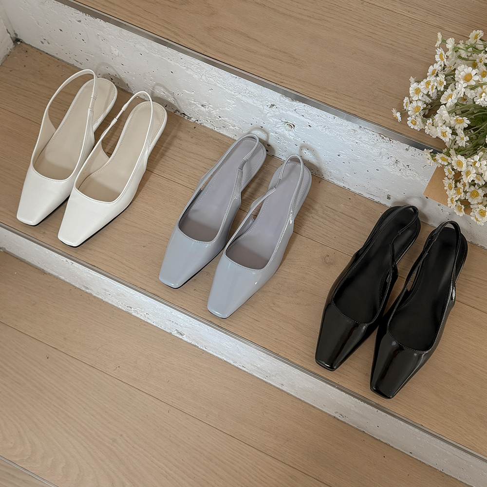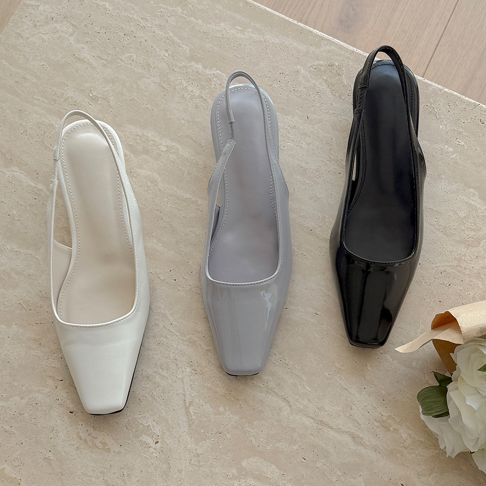 Glossy Soft Square Toe Sling Backs Heels