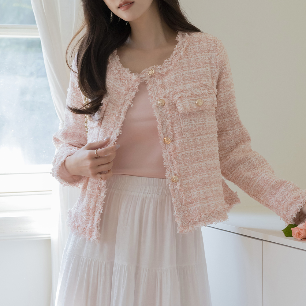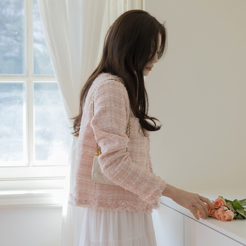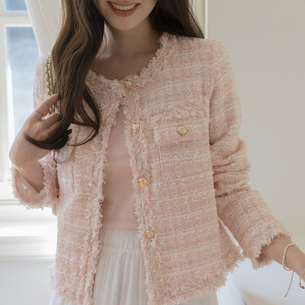 LOVE Raund neck Tassel Tweed Jacket