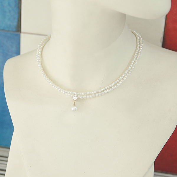 layered Pearl&Cubic Necklace