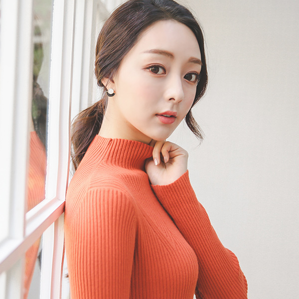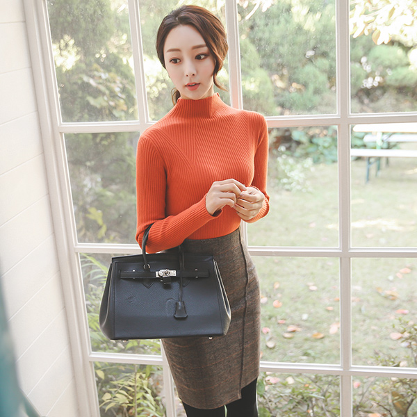 Soft funnel neck slit Long knit
