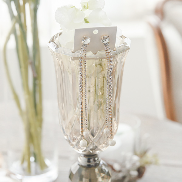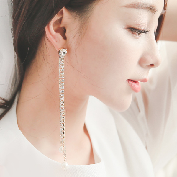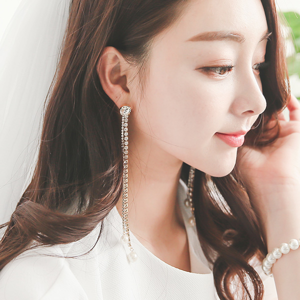 Luxury crystal pearl long earrings