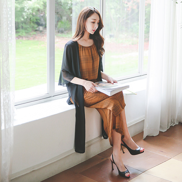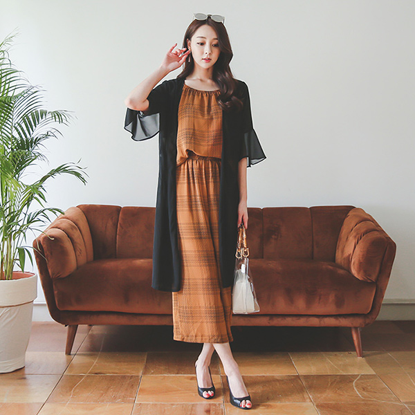 Solid Ruffle Sleeve Chiffon Long cardigan