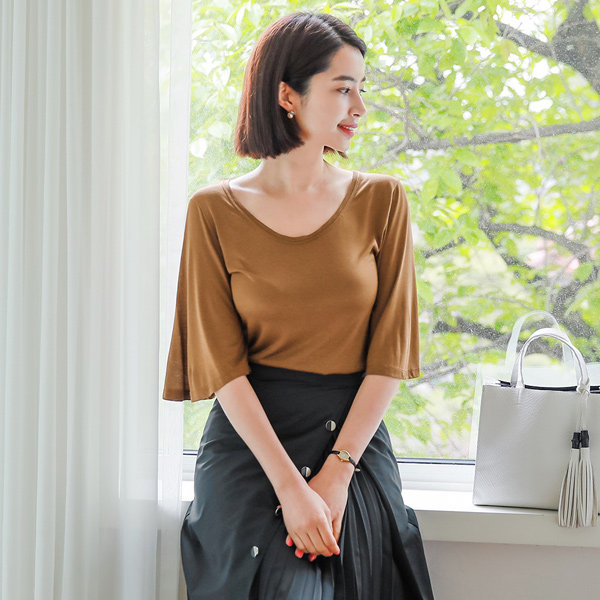 Silky wing sleeve Round T-shirt