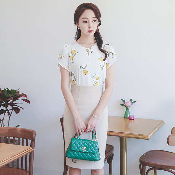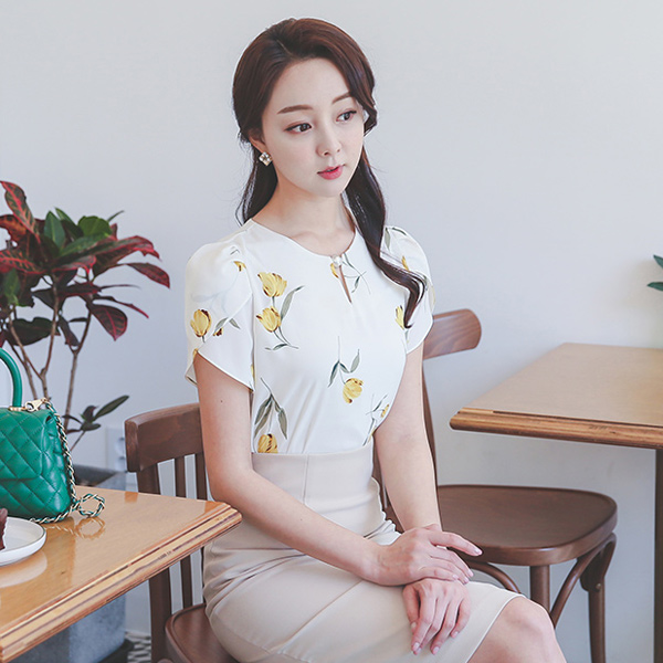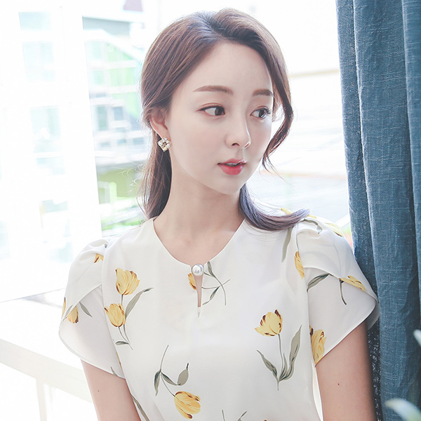 Floral Pearl Full Tulip Sleeve Blouse