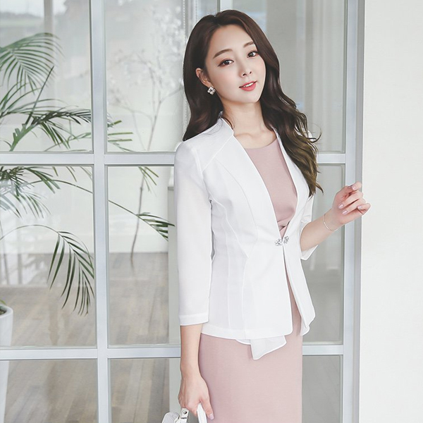 Chiffon Scarf Cubic Brooch Jacket
