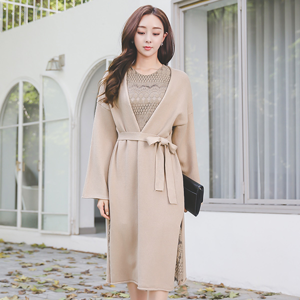 Soft Deep-Slit Long Shawl Cardigan