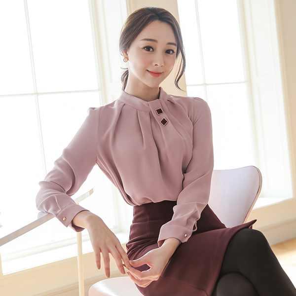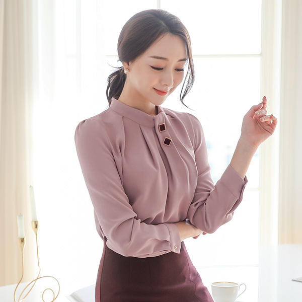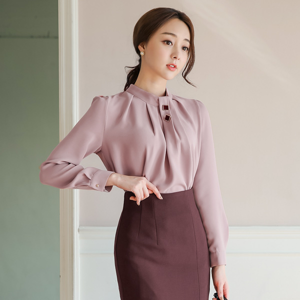 Gold Square Volume Pintuck Neck Blouse