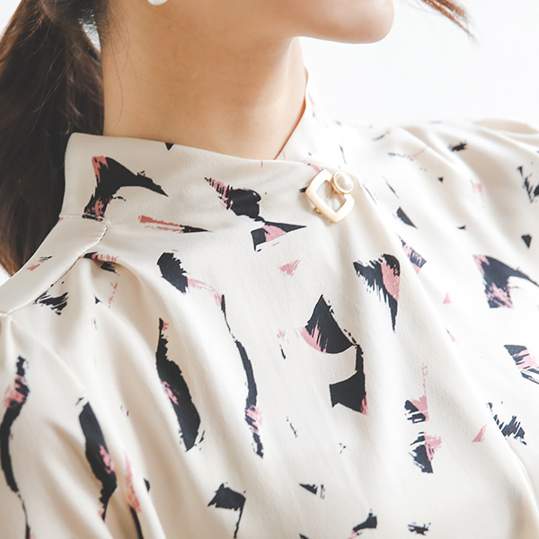 Brush Touch Pearl Square Blouse