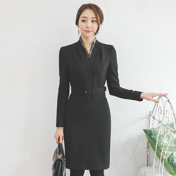 V-neck Square Belt Slim Dress