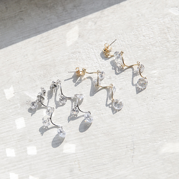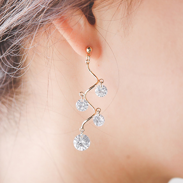 Wave cubic olive earring