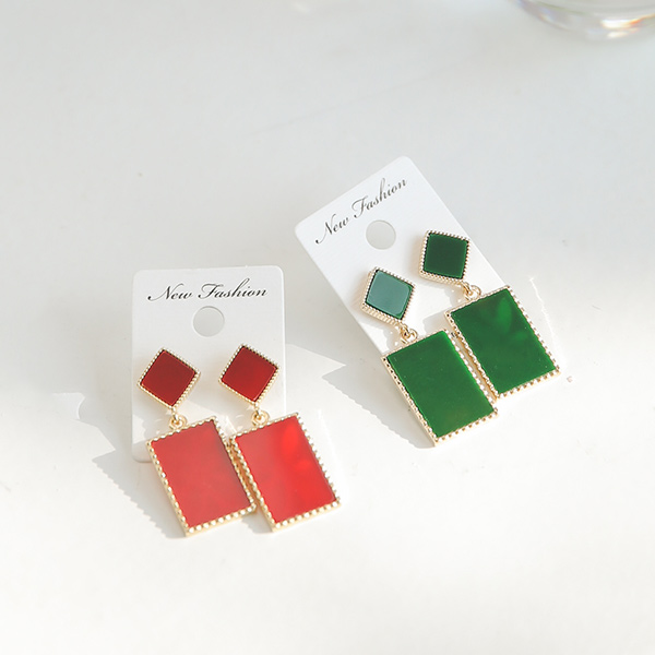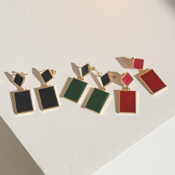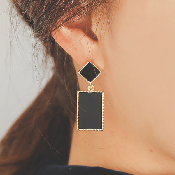 Gold Line square drop earrings