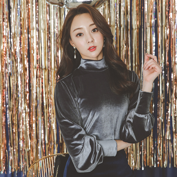 Real Velvet Puff High-neck Blouse