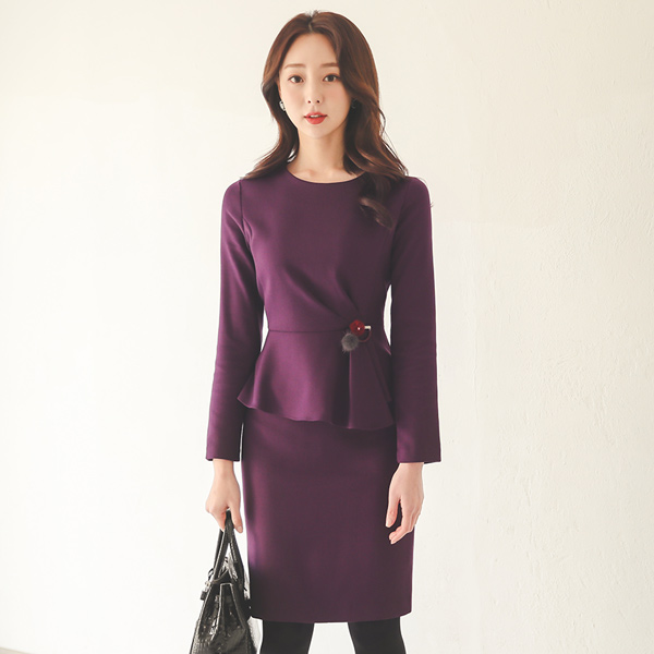 밍크브로치 Round Peplum Dress