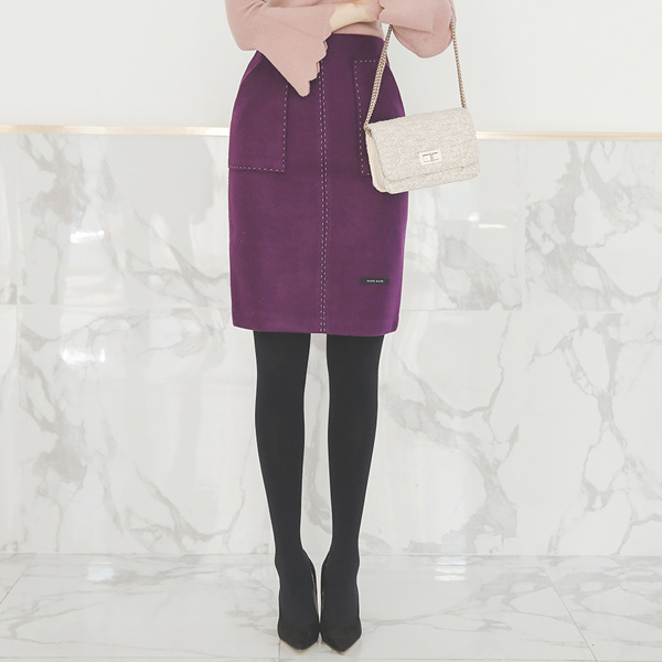 Hand Made Stitch Line Pocket Wool Skirt