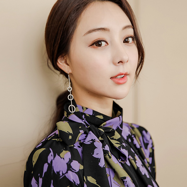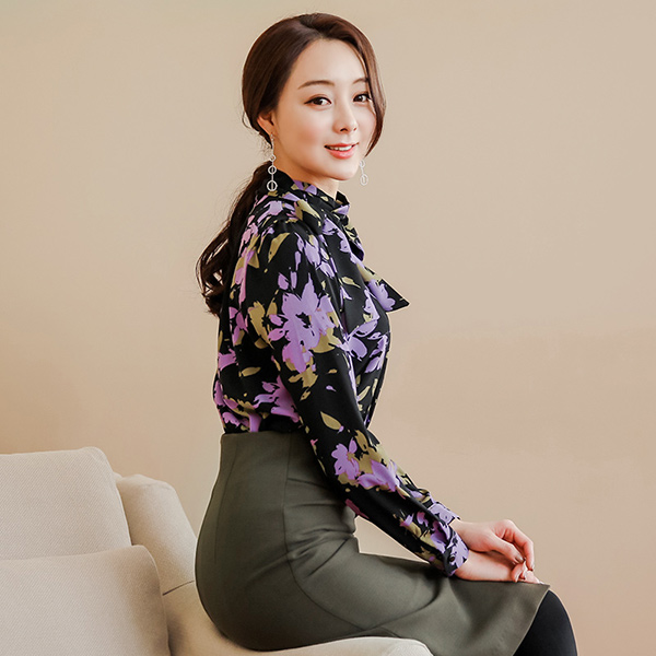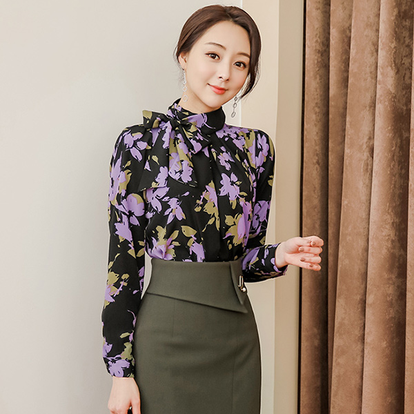 Pansy Flower Ribbon Scarf Shirling Blouse