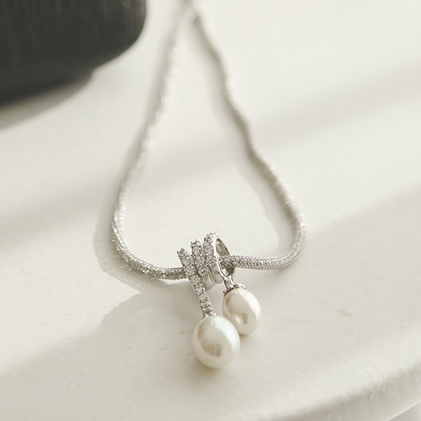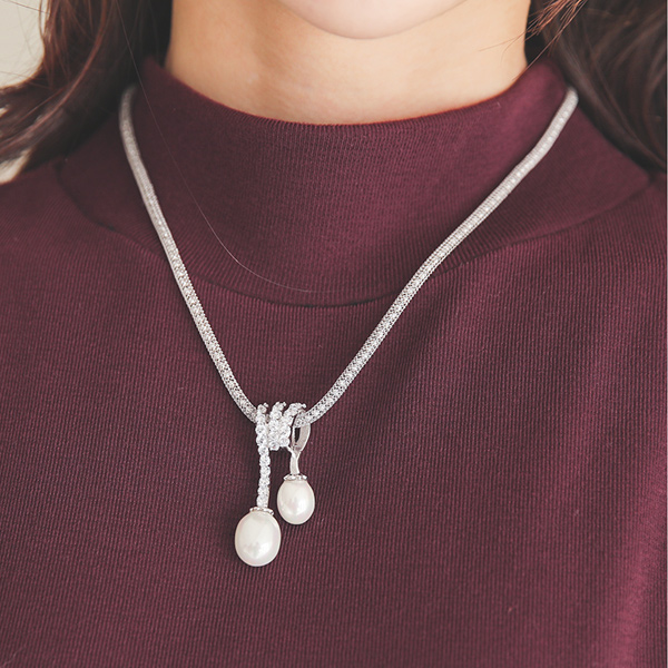 Double Pearl Cubic Necklace