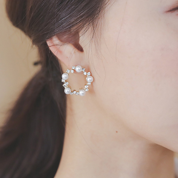 Bling Pearl Cubic Circle Earring
