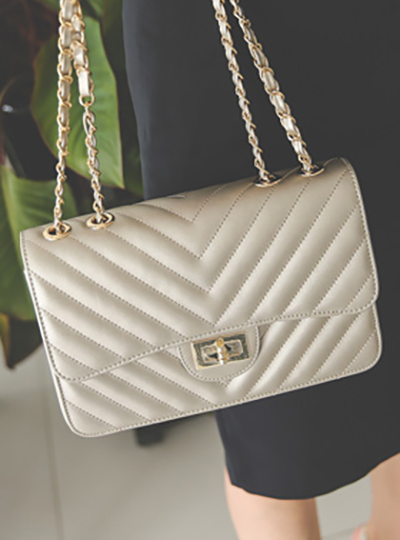 Bronze kwolting chain shoulder bag