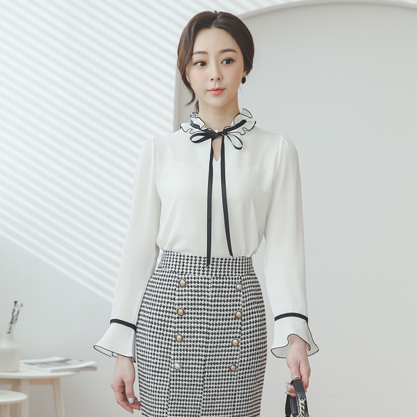 Double Gold Button Slit Tweed Skirt