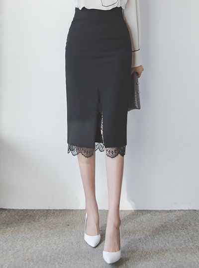 Lace Insert Slit Span Midiskirt