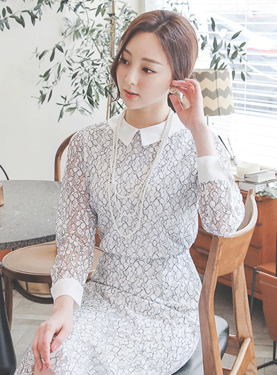 Lady Flat Collar Color Combination Lace Blouse