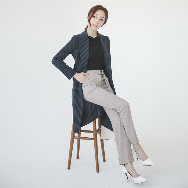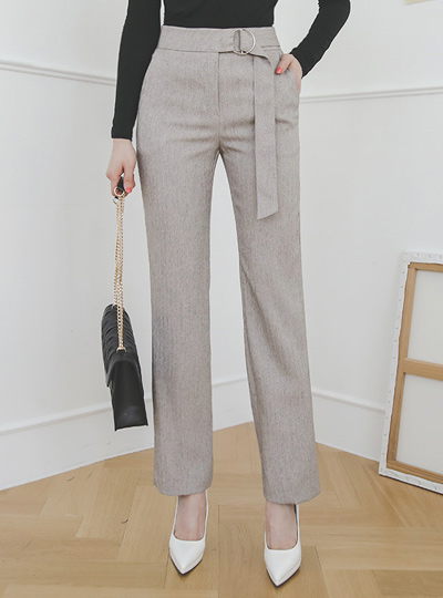 Silver O-ring Belted Bokashi Straight Slacks
