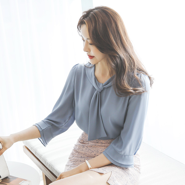 Preppy Ruffle Sleeves Scarf-Neck Blouse