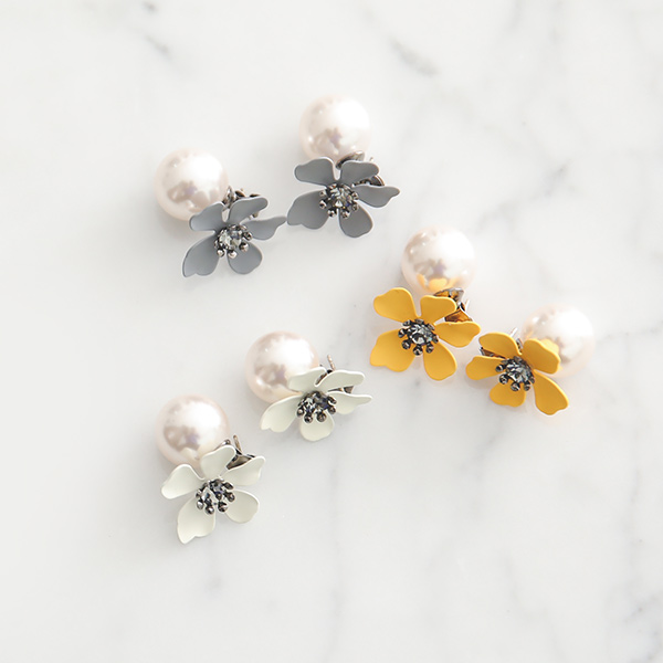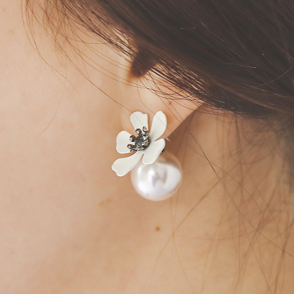 Flower Black Cubic Pearl Earring