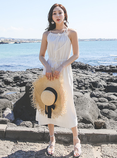 String Halter neck Gather Cotton Dress