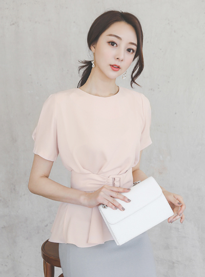 Pinch-Shirring Flared Belt Blouse(summer)