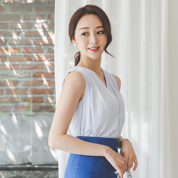 Double V-neck Shirring Sleeveless Blouse
