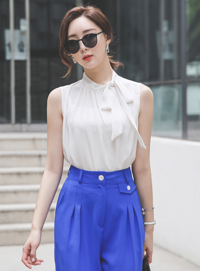 High-Waist Pintuck Colored Button Wide Slacks