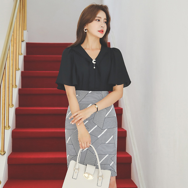 Stripe Patterns H-line Cotton Skirt