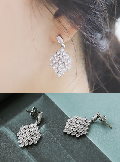 Mini Cubic Drop Silver Post Earring