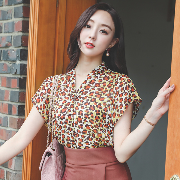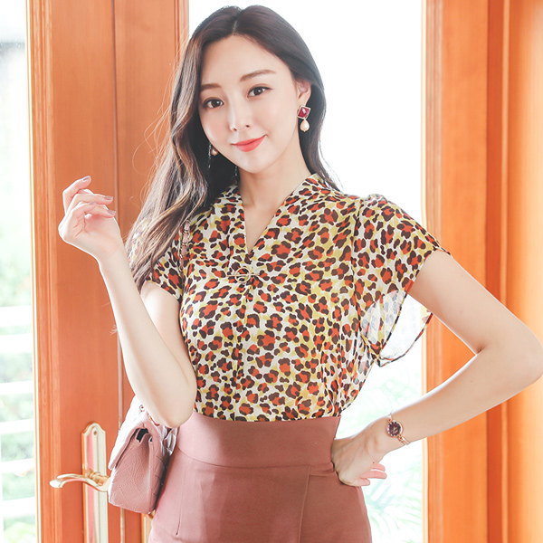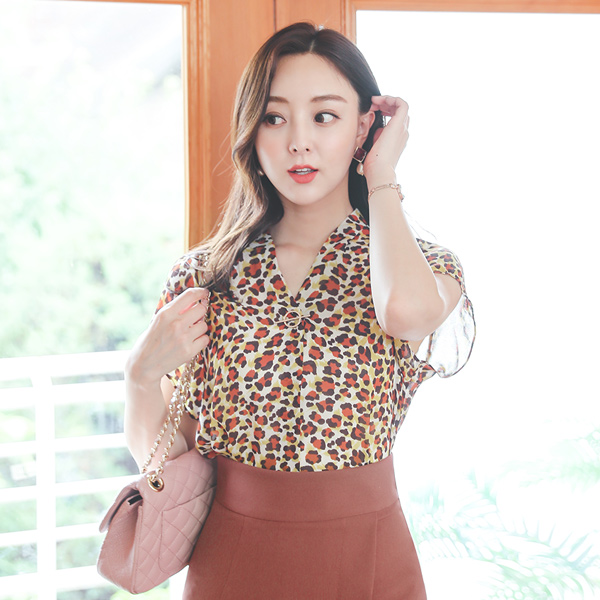 Leopard Gold-Ring V-neck Blouse