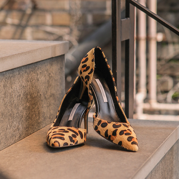 Trendy Leather Leopard Stiletto Heels