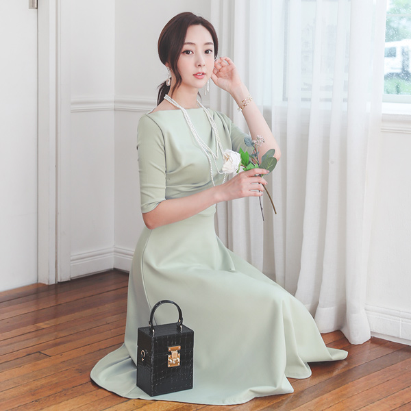 Shirring Draping A-line Long Dress