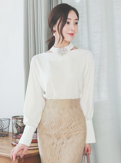 Choker High-Neck Gold Ring Cuffs Ragran Blouse