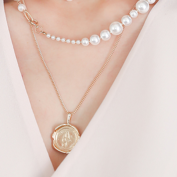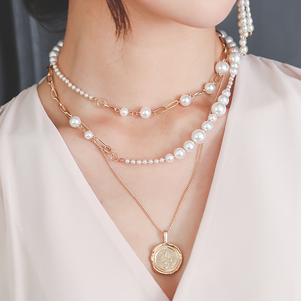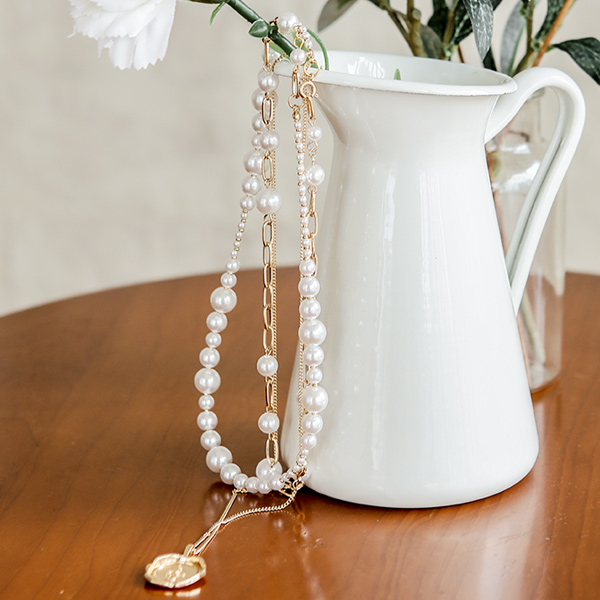 Pearl&Coin layered Gold Necklace(2set)