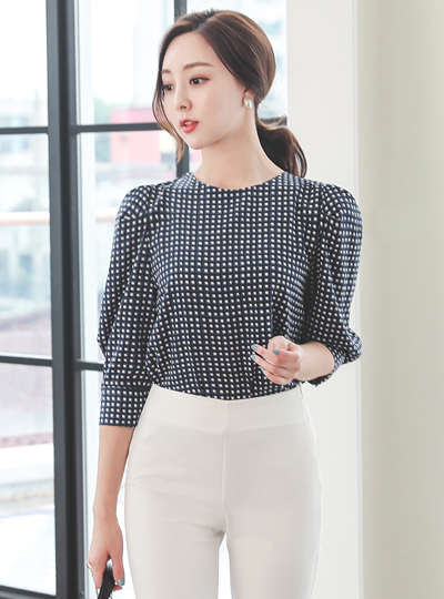 Plaid Puff Round Blouse