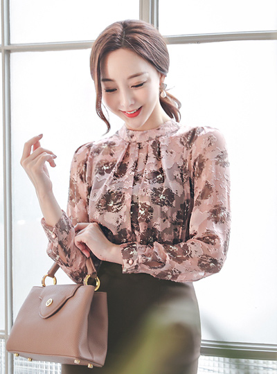 Feather Motive Flower Pintuck Blouse