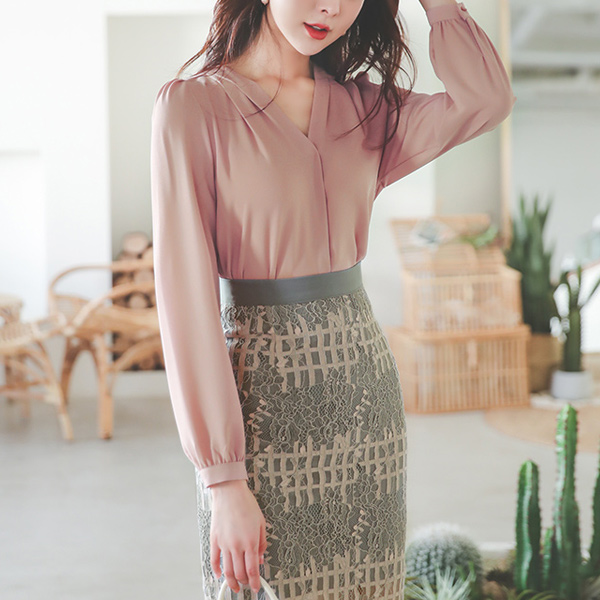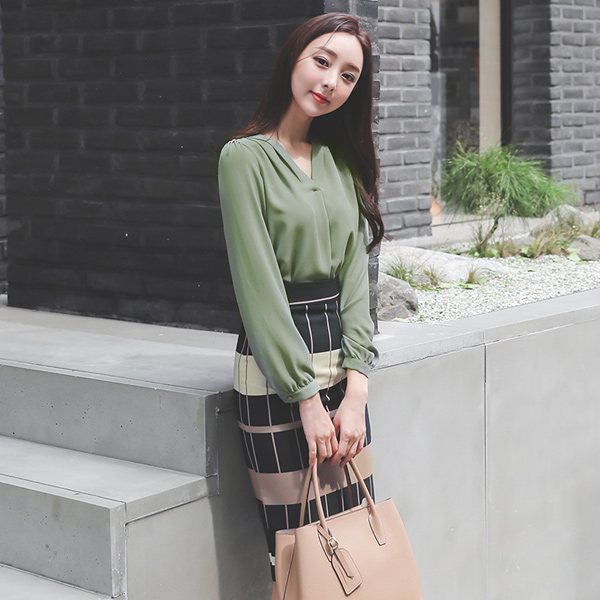 Multi-Block Check Color Combination Slim Skirt