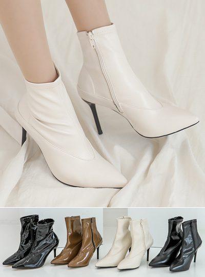 Stitch Cutting Slim Glossy&Matt Ankle boots