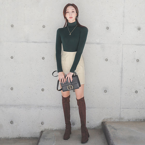 Patch Pocket Cutting Leather Mini Skirt